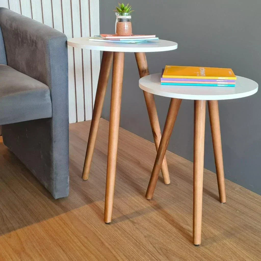 Adicione estilo e funcionalidade à sua sala com este conjunto de mesas laterais redondas. Com design compacto e moderno, elas são perfeitas para otimizar espaços e complementar a decoração.